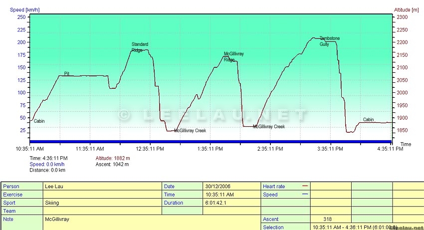 || Standard Ridge - McGillivray Ridge - Dec 30 || Connel Creek - Ronnie's Col - Dec 31 || Tombstone Gully - T-Bowl Glades - Jan 1 || Standard Ridge - Home Run Bowl - Jan 2 || McGillivray Ridge - LG 98 Glades - Jan 3 || Departure - Jan 4 ||