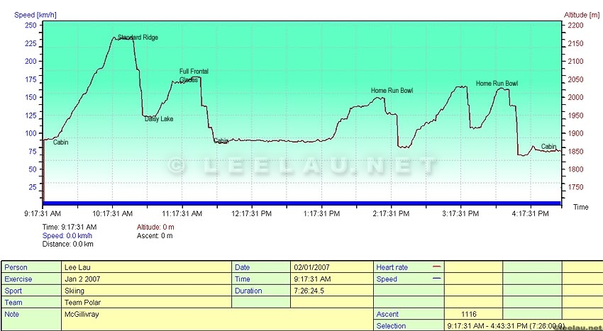 || Standard Ridge - McGillivray Ridge - Dec 30 || Connel Creek - Ronnie's Col - Dec 31 || Tombstone Gully - T-Bowl Glades - Jan 1 || Standard Ridge - Home Run Bowl - Jan 2 || McGillivray Ridge - LG 98 Glades - Jan 3 || Departure - Jan 4 ||