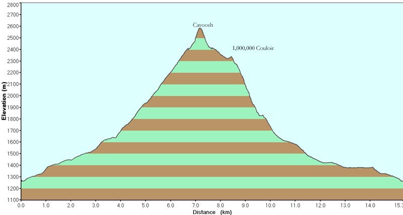 With Alex and Jeff, I went up to Cayoosh Peak from parking lot to peak in 3.5 hours. We took advantage of recent sticky stable snow to ski from the peak proper then down 1,000,000 coulour. We ascended about 1550m. Fast travel conditions had us back by 2.15 at parking lot after a rare lolly-gag 7am start from Whistler. It sure was nice to not have to fart around with ropes today